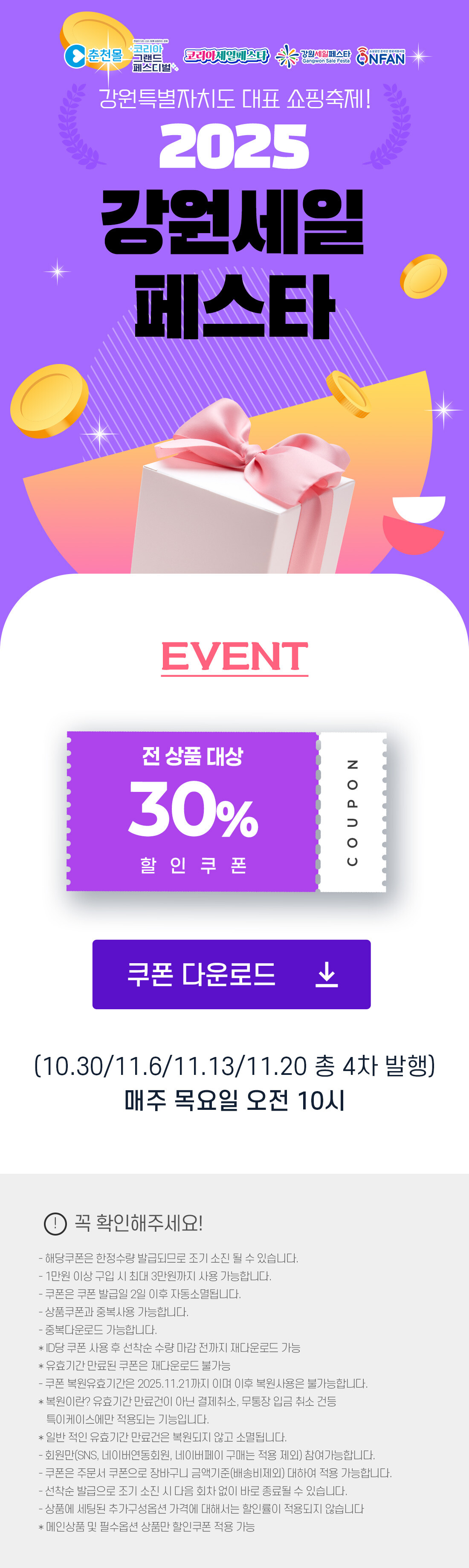 2025 코리아세일페스타X강원세일페스타와 함께하는 춘천몰 강원세일페스타 기획전 할인쿠폰 이벤트